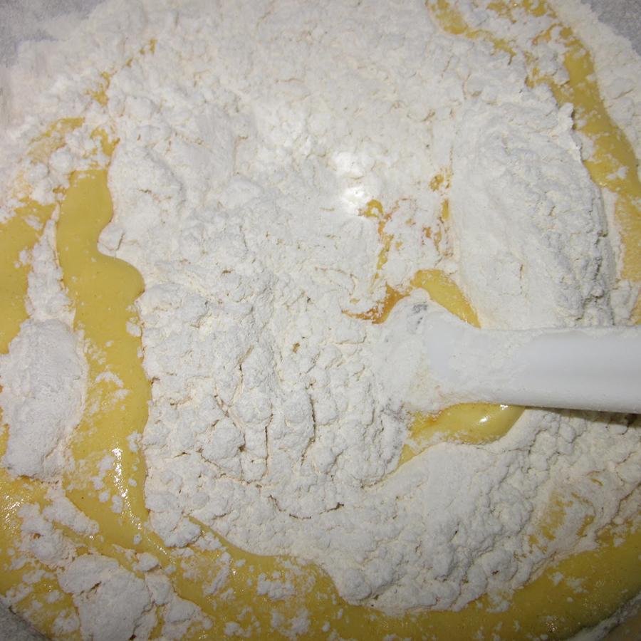 Cuando tengas los ingredientes anteriores bien incorporados, para seguir con la receta de queque de naranja, tamiza la harina con la levadura en polvo y añádela a la mezcla poco a poco. Puedes tamizarla por partes directamente sobre el recipiente con el resto de ingredientes, así evitarás ensuciar más cacharros. En este paso deberás tener paciencia, pues has de mezclarlo todo muy bien para evitar que queden grumos.
