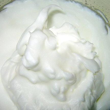 Una vez hayas obtenido una masa consistente y sin grumos, es el momento de verter el zumo de naranja para reducir el espesor. Incorpora también la ralladura y mézclalo todo. Resérvalo unos segundos mientras bates las claras a punto de nieve en un recipiente aparte. Cuando las tengas listas, es decir, que al volcar el cuenco no caigan, introdúcelas en la masa y mézclalas con la ayuda de una espátula y haciendo movimientos envolventes suaves.