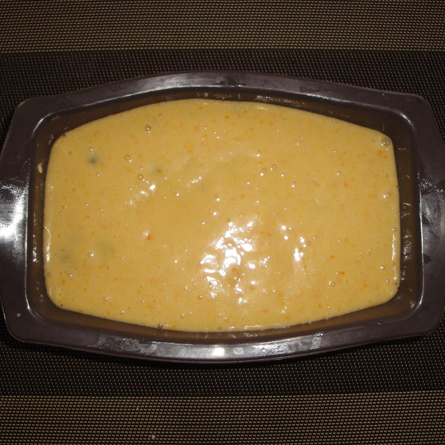 Ahora solo nos queda introducir la masa de queque de naranja en un molde y hornear durante 40-45 minutos, hasta que obtenga la textura y consistencia adecuada. Puedes utilizar el molde que quieras siempre y cuando sea apto para horno. Una vez pasado el tiempo, realiza la prueba del palillo para confirmar que está listo.