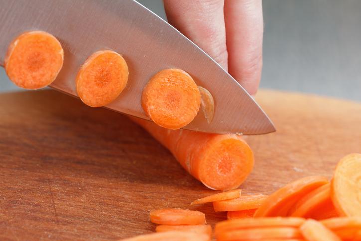 Pela, lava y pica o ralla las zanahorias con un rallador, batidora o robot de cocina y resérvalas.