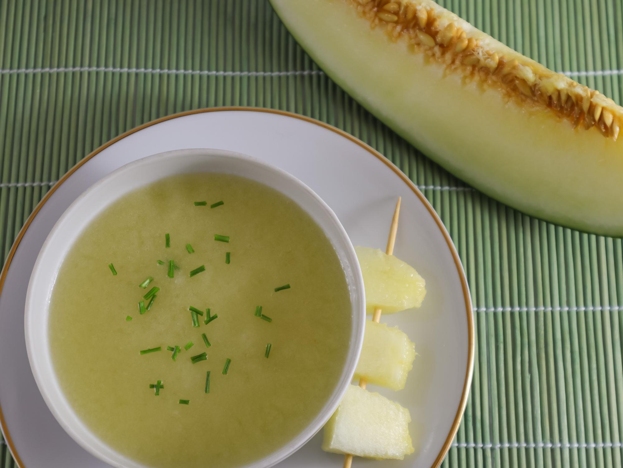 - La pulpa del melón también puede incluirse dentro del salmorejo una vez vayas a servirlo. Por ejemplo, puedes hacer bolitas de melón que sirvan como guarnición junto al jamón serrano y al huevo duro.