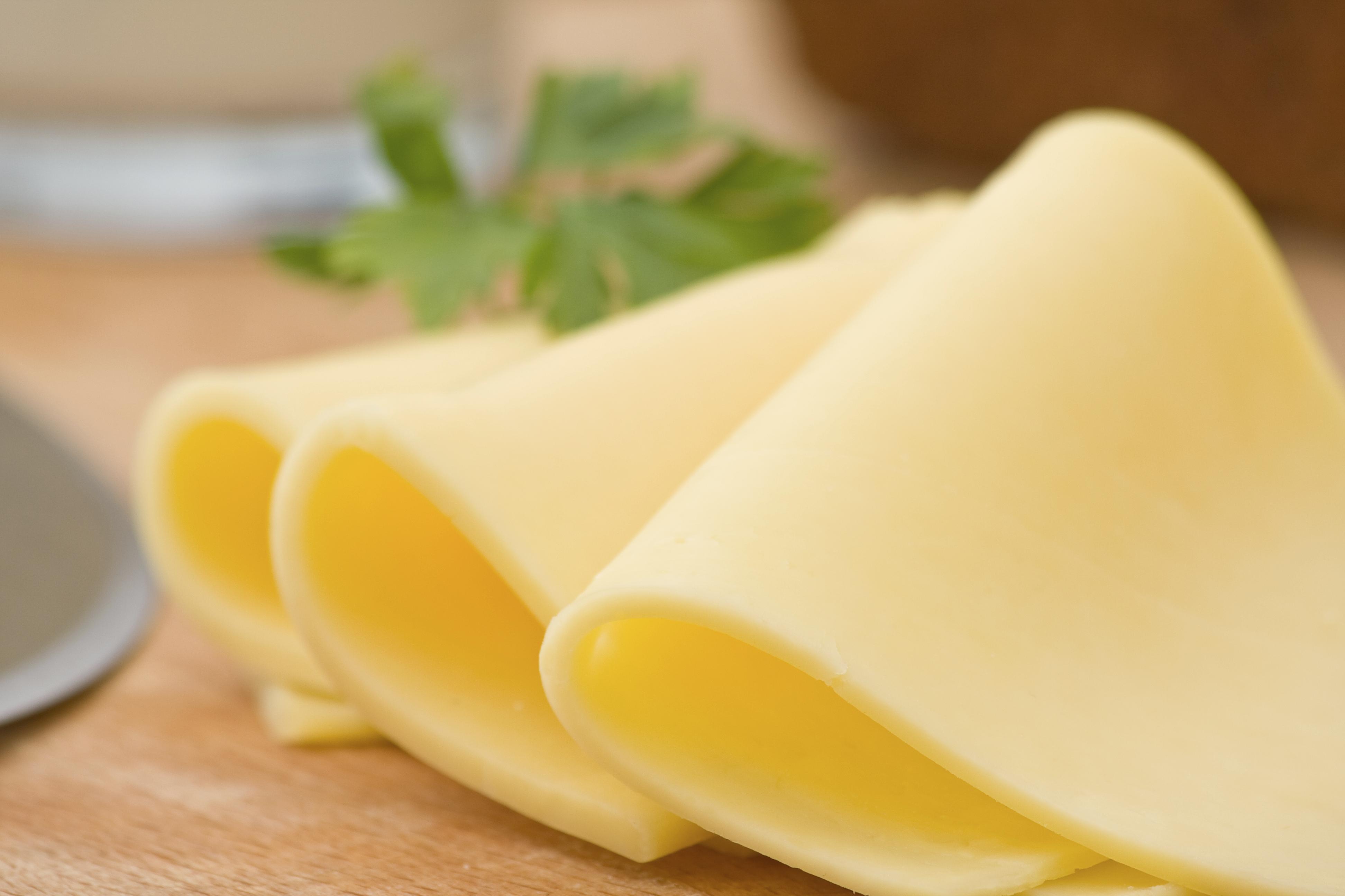 Seguidamente, deberás hacer lo mismo con el queso y poner una o dos lonchas encima del jamón york; si pones dos, lo más apropiado será que pongas una por cada lado del jamón york, de modo que el embutido quede en medio.