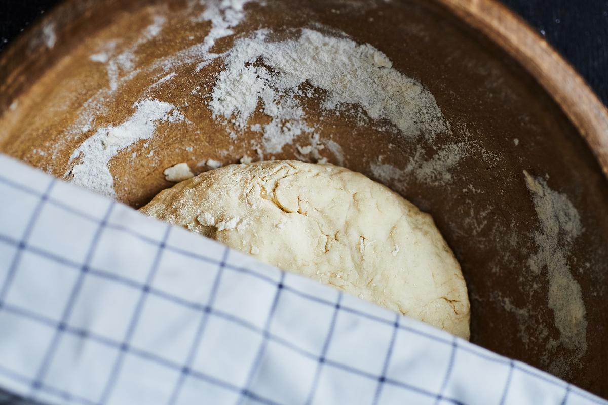 Forma una bola con la masa, colócala en un bol ligeramente engrasado y cúbrela con un paño limpio. Deja reposar en un lugar cálido durante aproximadamente 1 hora o hasta que haya duplicado su tamaño. Es importante dejar reposar la masa en un lugar cálido y sin corrientes de aire para que leve correctamente.