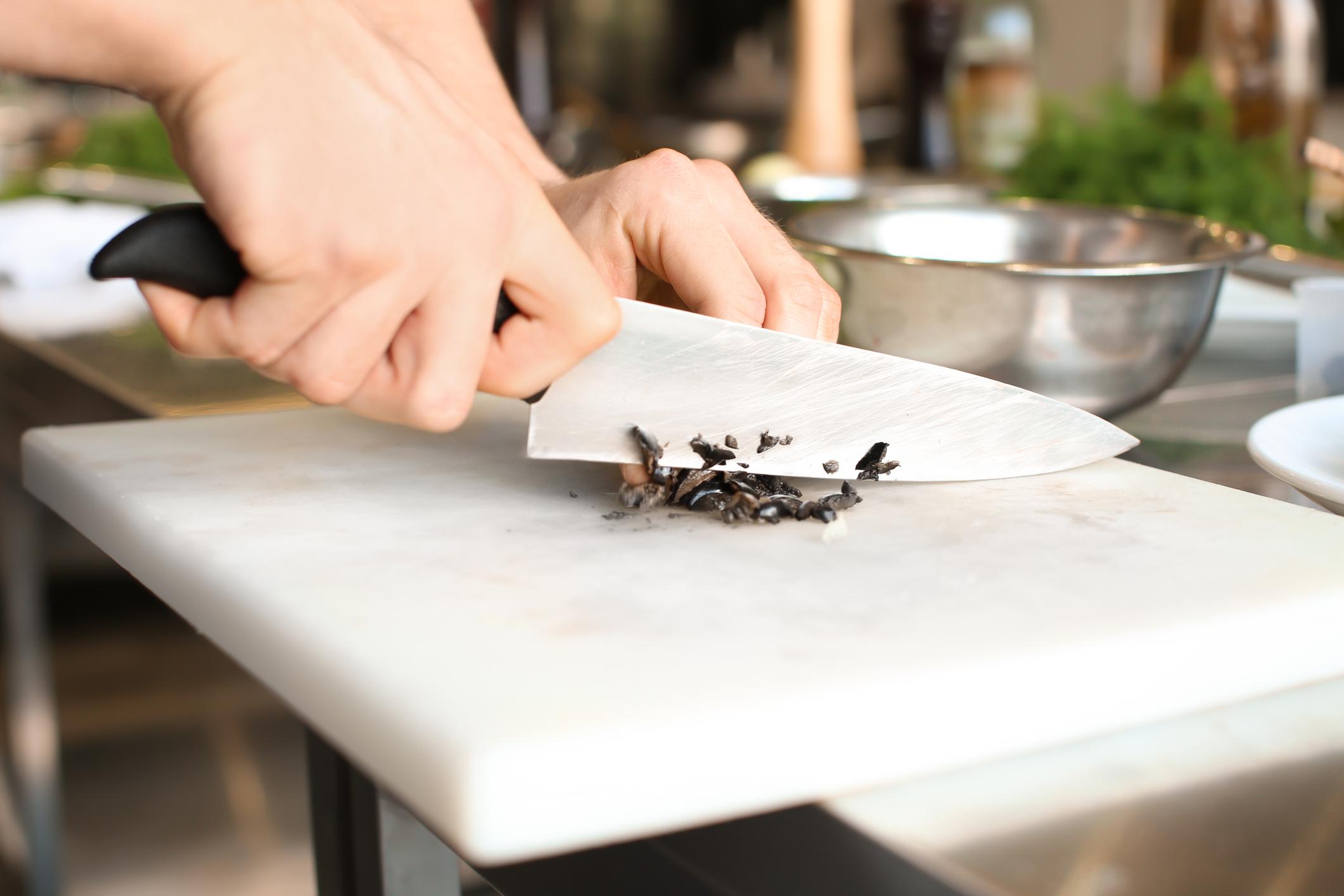 Con los tres ingredientes principales listos, solo te queda dejar listo el resto de ingredientes. Por un lado, deberás deshuesar y cortar en finas láminas las aceitunas negras.