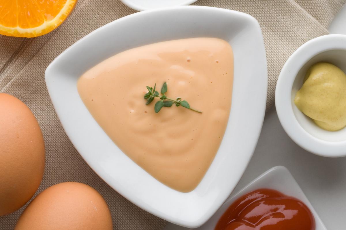Para acompañar el bogavante, haz una salsa tipo cóctel, poniendo en vaso de batidora: la mayonesa, el zumo de media naranja y la cucharada de coñac. Coge, también, la cabeza del bogavante y extrae el coral apretándola ligeramente (saldará la carne gelatinosa y rojiza que está en su interior, justo en la unión con el tórax). Añádelo a vaso y bate unos minutos la mezcla a velocidad media. Reserva la salsa en nevera.