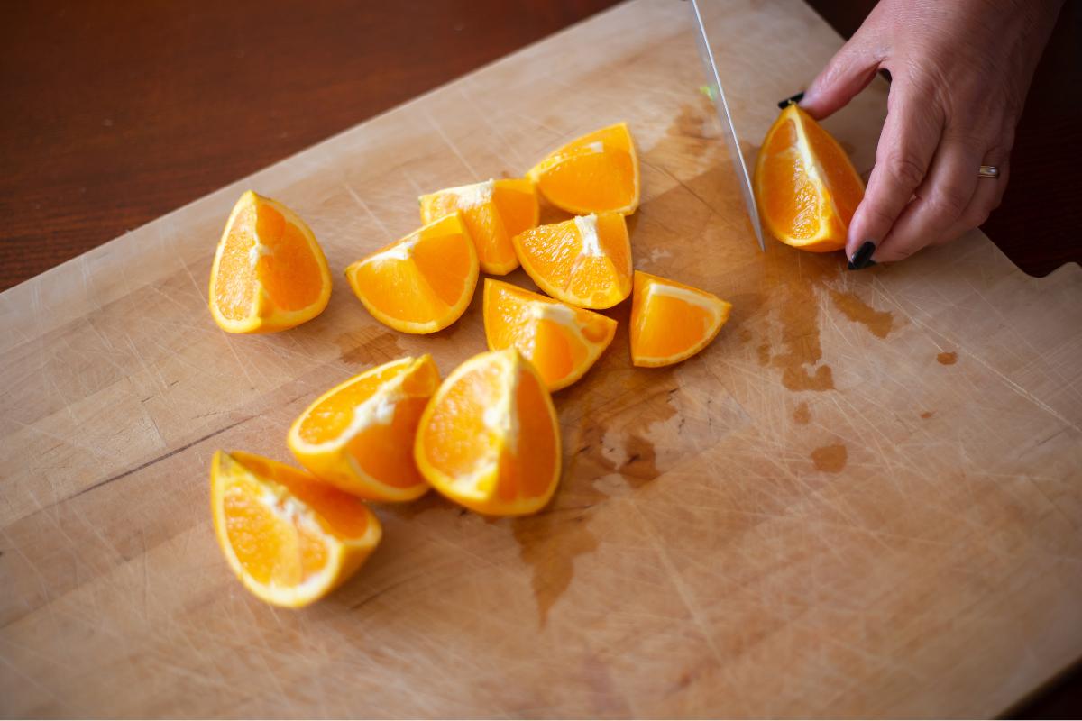 - Lavar las naranjas previamente antes de su cocinado es muy importante porque para la elaboración usaremos su cáscara y en su piel pueden haber múltiples contaminantes.