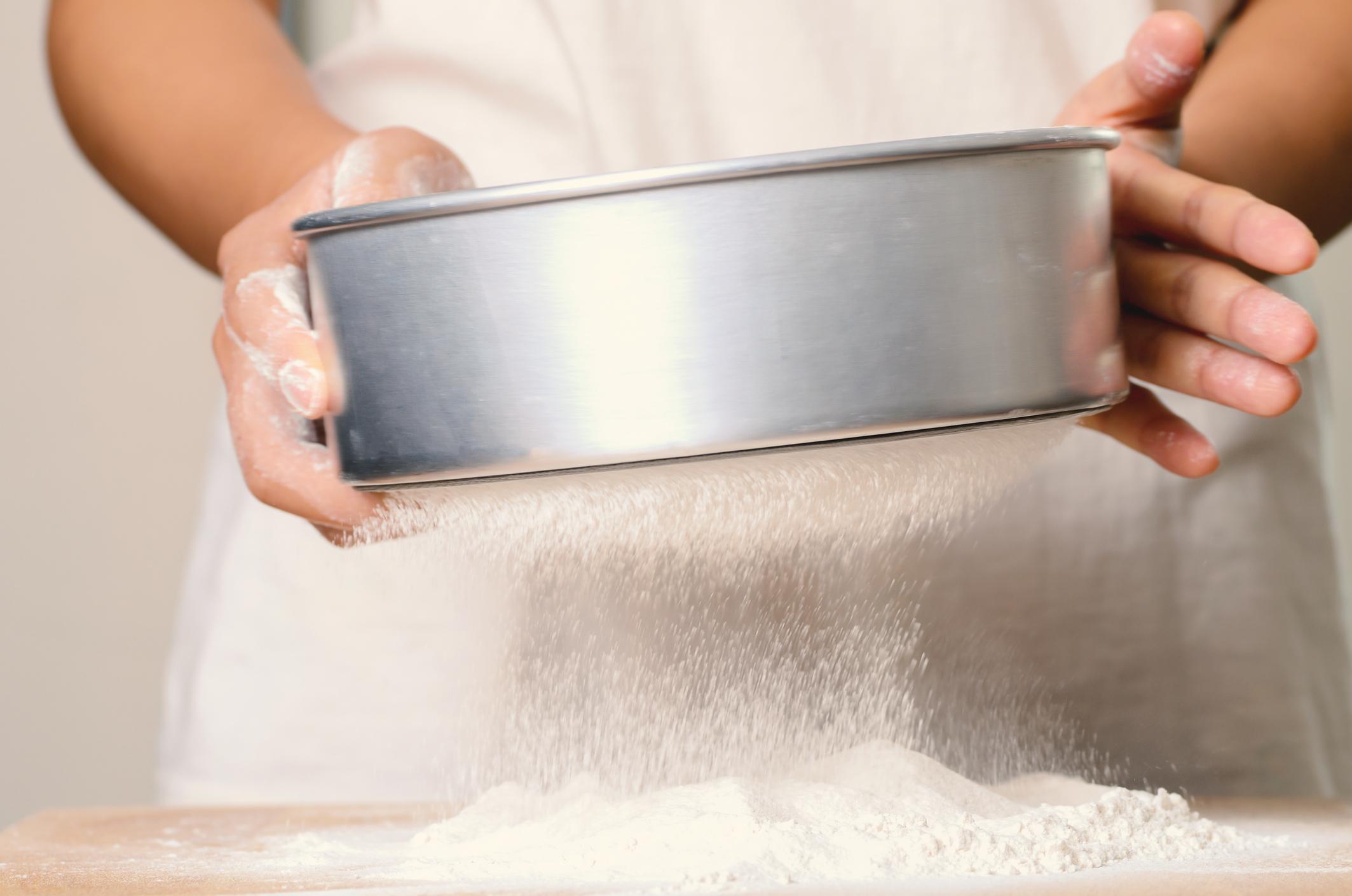 Para hacer esta receta de tarta de calabaza tradicional, lo primero que necesitas es elaborar la base, preparando una masa quebrada. Para ello, tamiza la harina con ayuda de un colador y ponla en un bol grande. Seguidamente, añade la mantequilla recién sacada de la nevera para que esté bien fría. Con tus dedos, ve deshaciéndola para que se mezcle con la harina.