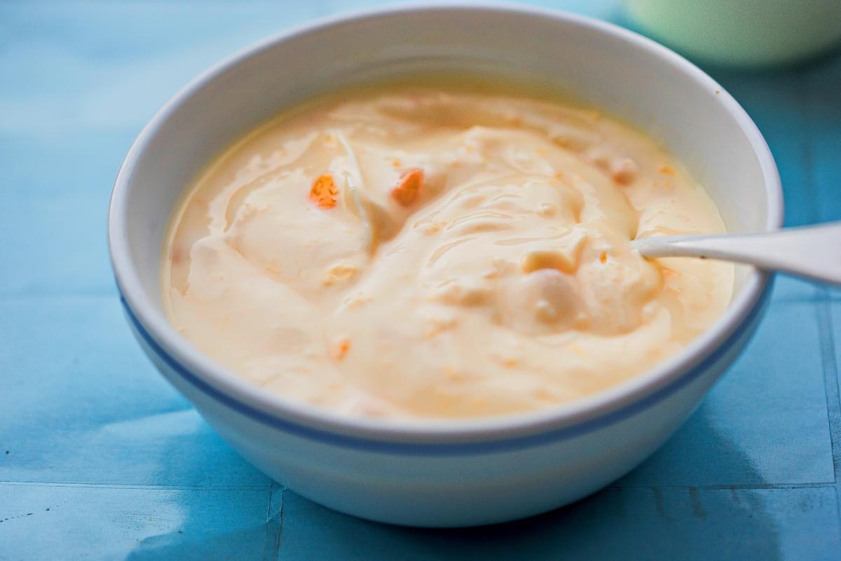 Incorpora a la mezcla el yogur griego natural y la ralladura de una naranja. Después, mézclalo bien y reserva la mezcla para usarla más tarde.