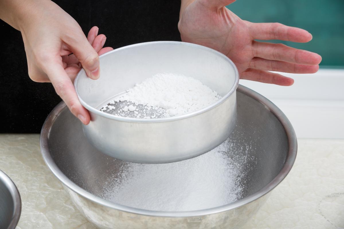 Prepara la bechamel para emperezar a hacer estas deliciosas croquetas de cocido. Tamiza la harina usando un tamizador o colador fino para evitar la formación de grumos.