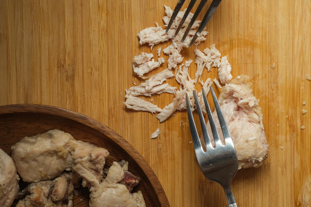 Escoge los restos de cocido, puede ser una mezcla de pollo, morcilla, chorizo, carne de ternera y un poco de jamón. Muchos combinan dependiendo de lo que ha sobrado el día anterior o de lo que se haya cocinado de más. Estos restos se pican y se observa que no queden huesos, ni restos de cartílagos muy grandes. Para esta tarea, será útil un cuchillo con buen filo o unos tenedores. A este paso se le llama desmigado y es importante para no encontrar tropezones en el plato al momento de comer.