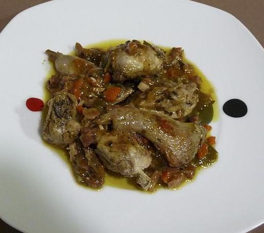 Tapar la cacerola y cocer a fuego lento durante 2 horas aproximadamente o hasta que las perdices estén tiernas. Si fuera necesario, agregar un poco de agua durante la cocción.