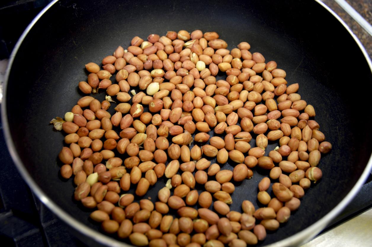 También puedes optar por tostar cacahuetes en sartén, por lo que en tal caso, en vez de preparar el horno, prepara una sartén sin aceite o solo con unas gotitas, muy poco, ya que el cacahuete suelta aceite propio.