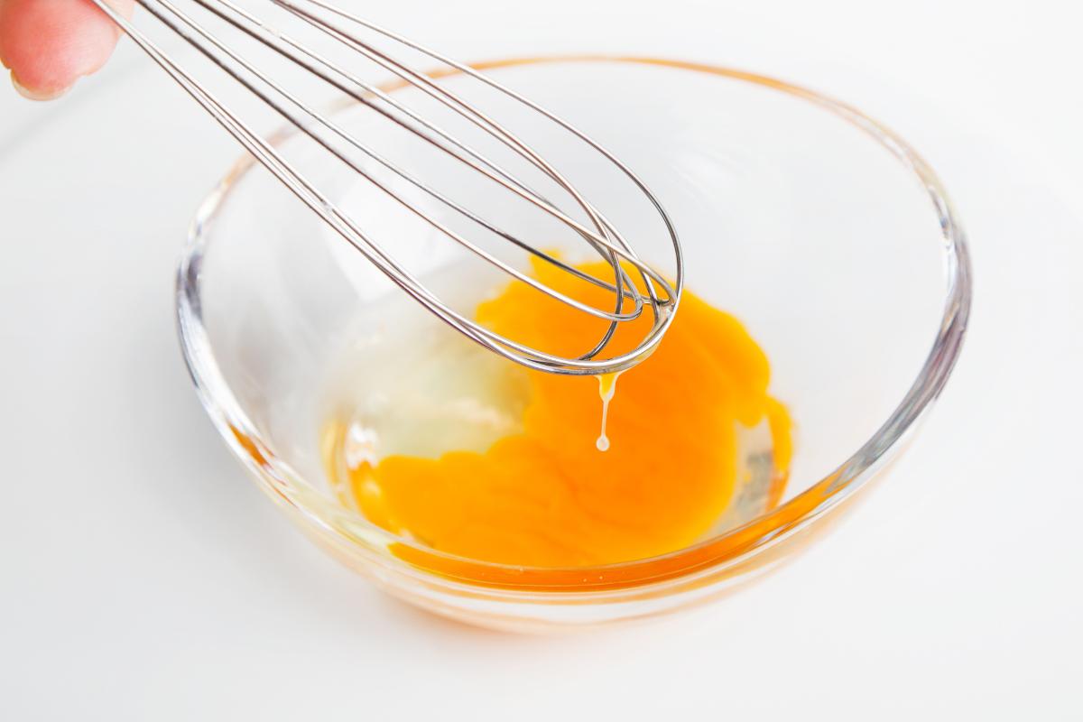 Añade los huevos uno a uno, batiendo bien tras cada incorporación.