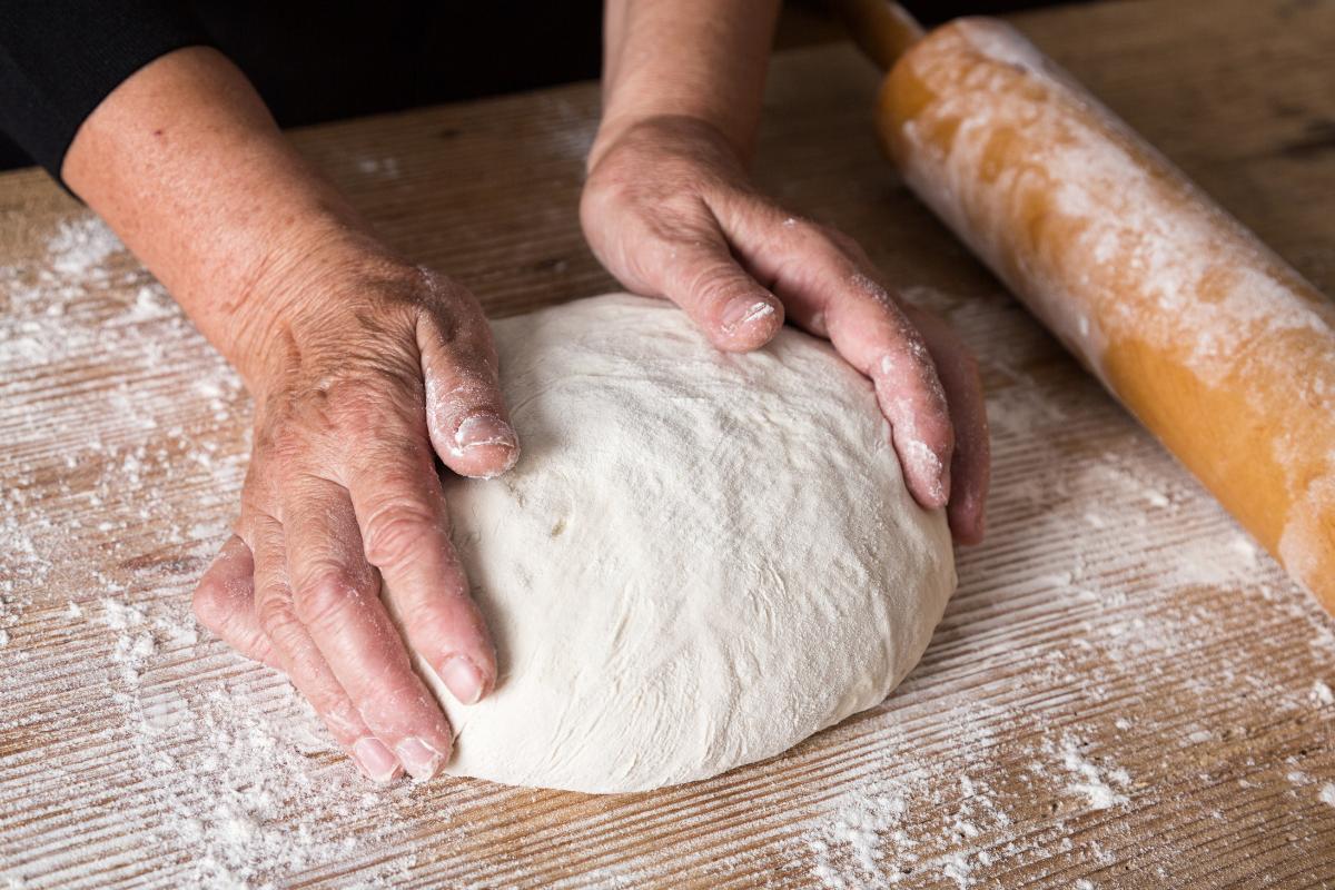 Trabaja la masa durante varios minutos hasta que quede homogénea, suave y ligeramente elástica. Debe despegarse de las manos con facilidad. Si notas que está demasiado seca, puedes añadir una pequeña cantidad de vino o agua, pero siempre poco a poco.