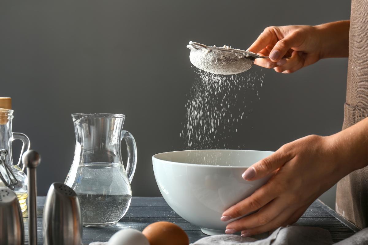 Tamiza la harina junto con los demás ingredientes: la levadura, la canela, el jengibre (si lo usas), el cacao en polvo y la pizca de sal. Esto evitará grumos y distribuirá los ingredientes de manera uniforme.