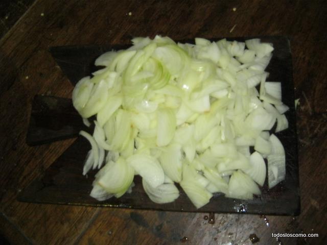Comenzamos cortando la cebolla. Y seguimos con los morrones.