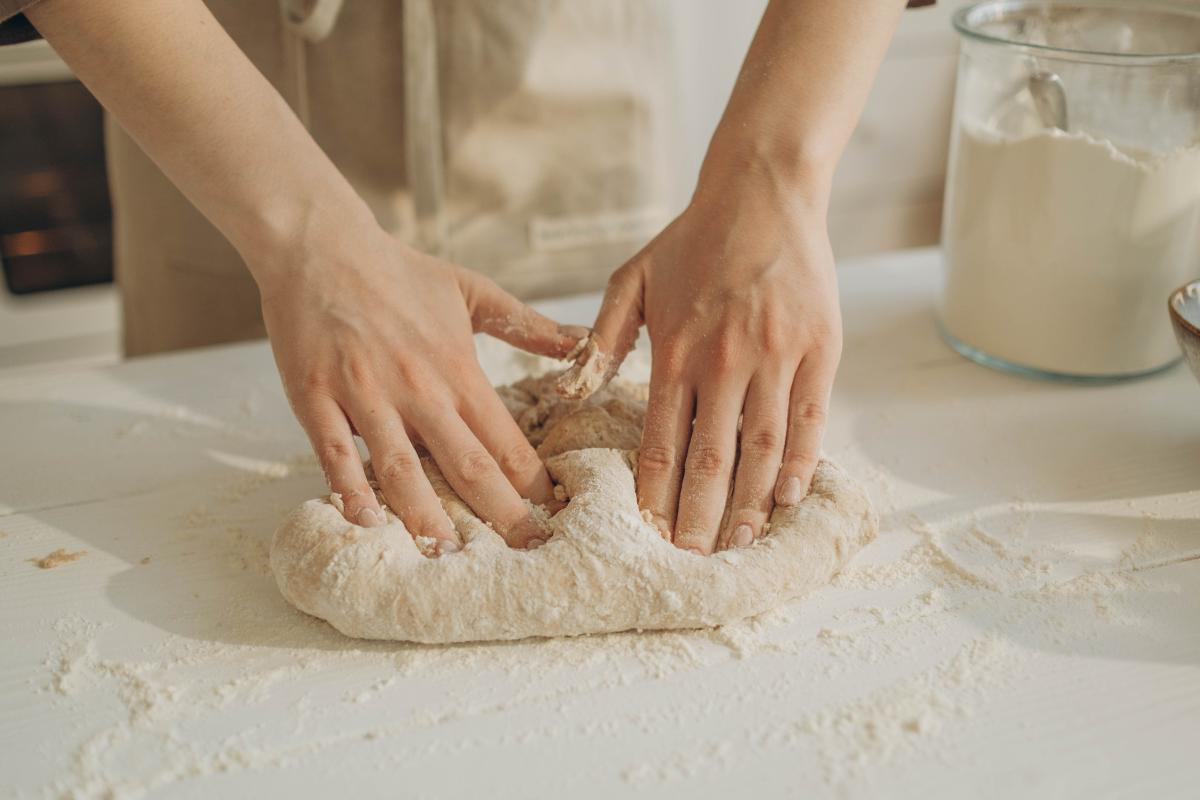 Mezcla todos los ingredientes hasta conseguir una masa homogénea. Debes amasar durante 10 minutos aproximadamente, hasta que la masa esté elástica y con una textura suave. Si está muy pegajosa, añade un poco más de harina.