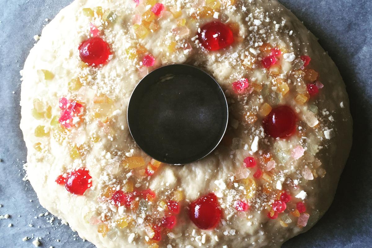 Mete el roscón en el horno y hornea durante 20-25 minutos, es decir, hasta que se haya dorado. Después de hornearlo, lo dejas enfriar a temperatura ambiente sobre una rejilla.
