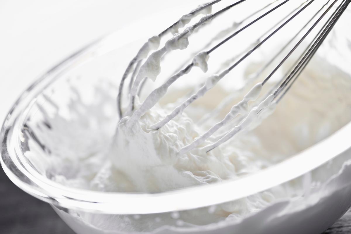 Mientras se enfría el roscón, bate la nata en un bol frío junto a la esencia de vainilla y el azúcar glass hasta formar unos picos firmes. En este paso puedes tardar entre 5 y 10 minutos, según la batidora que uses.