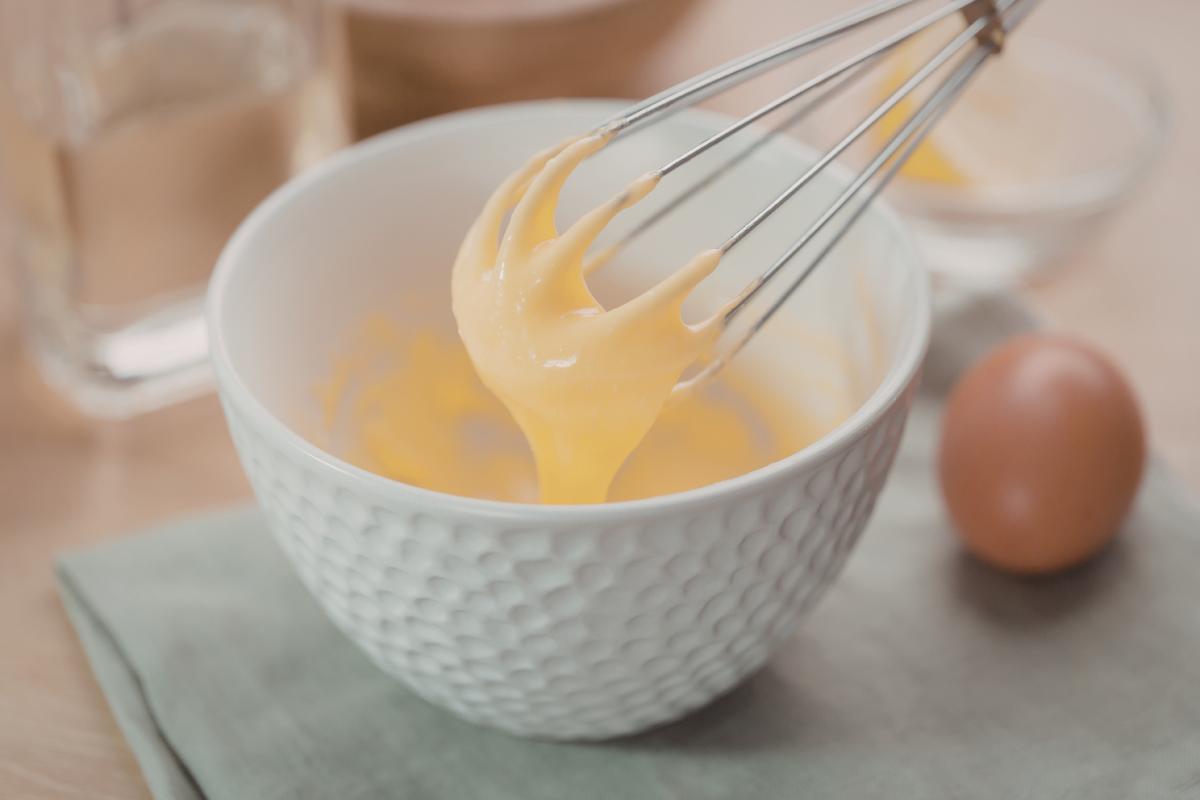 Para disfrutar de las auténticas rosquillas de la abuela esponjosas empezamos preparando la masa. En un bol amplio, bate los huevos junto al azúcar hasta que la mezcla esté clara y ligeramente espumosa.