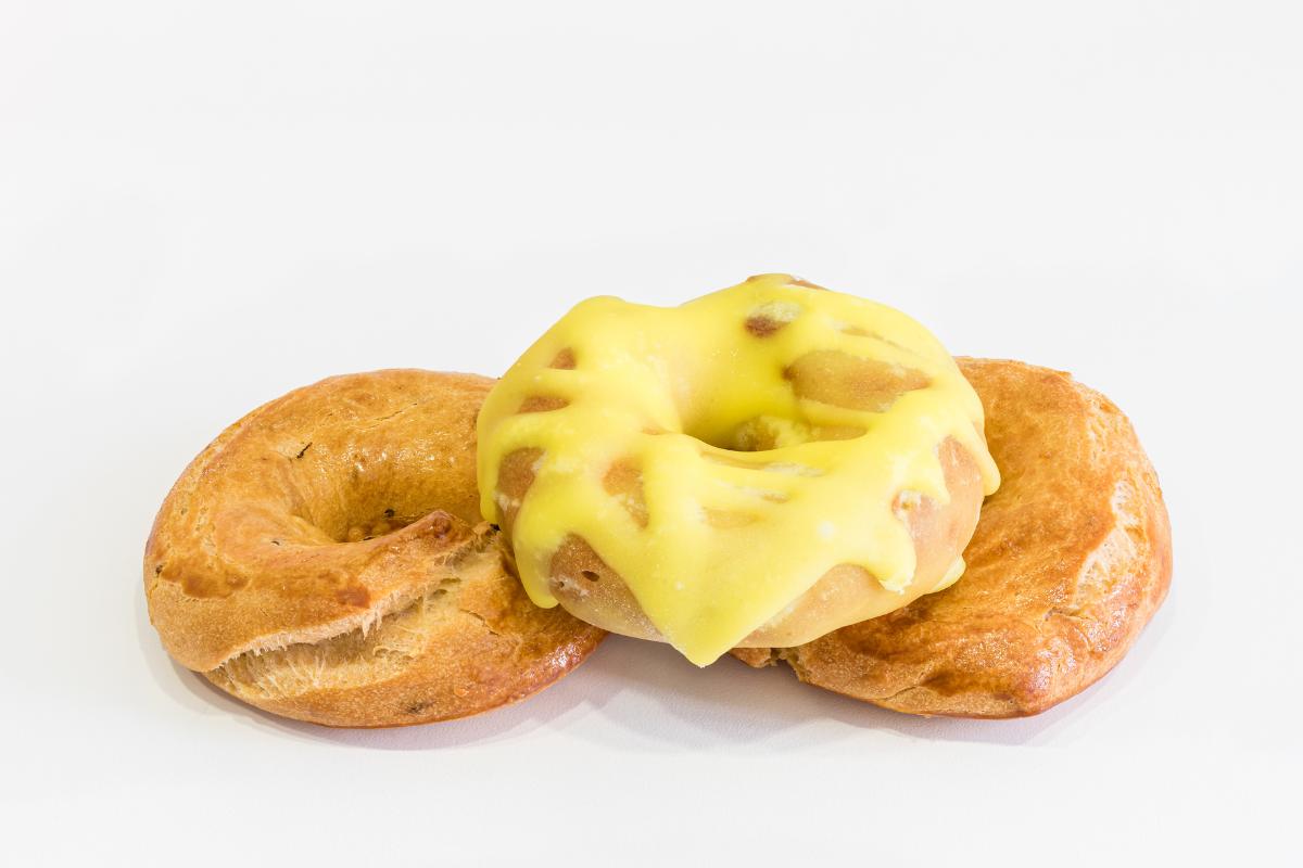 Calienta el horno a 220 oC y, con un huevo batido, pincela cada rosquilla para dar brillo. Hornea durante 15 minutos hasta que las rosquillas queden bien hechas y doradas.