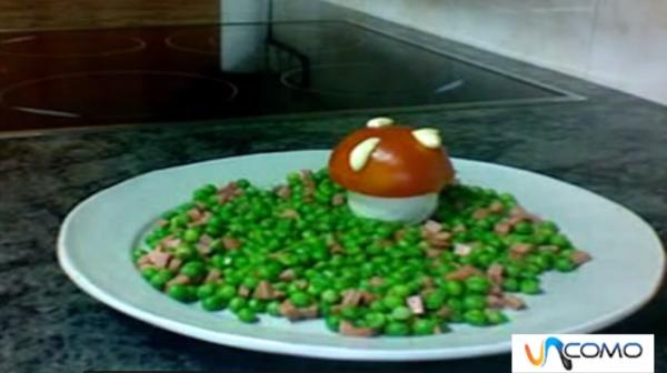En la mayoría de ocasiones los niños se niegan a comer verduras y nos cuesta mucho trabajo hacer platos saludables que sean de su gusto. En este vídeo te mostramos cómo hacer un plato de guisantes para niños, es una receta sencilla y divertida para lograr que los más pequeños de la casa coman alimentos sanos. Los ingredientes que necesitas para preparar esta receta son los siguientes: 100 g de guisantes, una salchicha, un huevo, 1/2 tomate, un poquito de aceite, mantequilla y mahonesa. Visita en unComo.com el artículo cómo hacer que los niños coman frutas y verduras para mejorar la alimentación de tus hijos de forma fácil y eficaz.