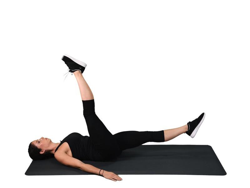 - Baja la pierna poco a poco, para que el abdomen haga el esfuerzo y completa 15 repeticiones.