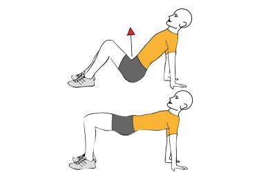 - Realiza una contracción de los músculos subiendo la pelvis hasta su altura máxima, sin permitir que se despeguen los pies del suelo.