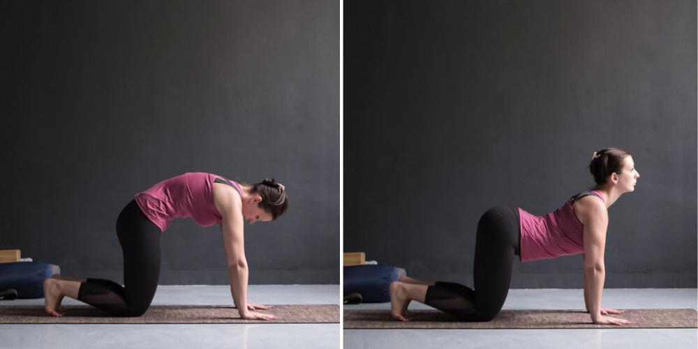 - Inhala y arquea la espalda hacia afuera, como lo hacen los gatos.