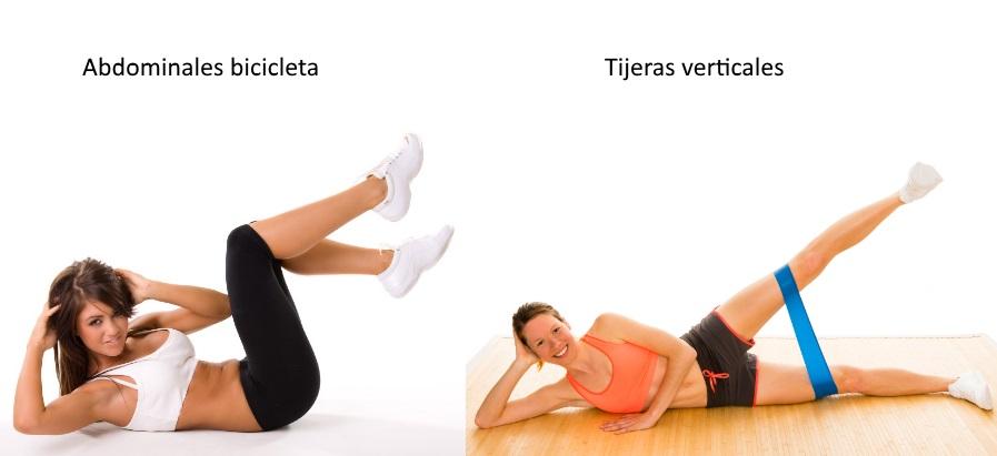 Deberás tumbarte sobre una esterilla y elevar las piernas acercando las rodillas a la altura del pecho; coloca las manos detrás de la nuca. Ahora, deberás elevar el torso y comenzar a mover las piernas lentamente como si estuvieras pedaleando, el objetivo es que intentes acercar el codo izquierdo a la rodilla derecha y viceversa. De este modo, conseguirás fortalecer los oblicuos e ir reduciendo la grasa almacenada en esta zona. Haz 3 series de 15 repeticiones para ir notando mejoría.