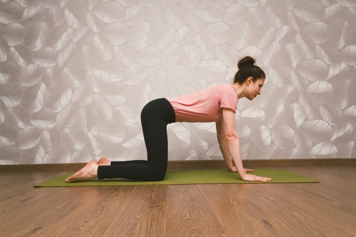 - Arrodíllate sobre una colchoneta o esterilla y echa el tronco hacia atrás.