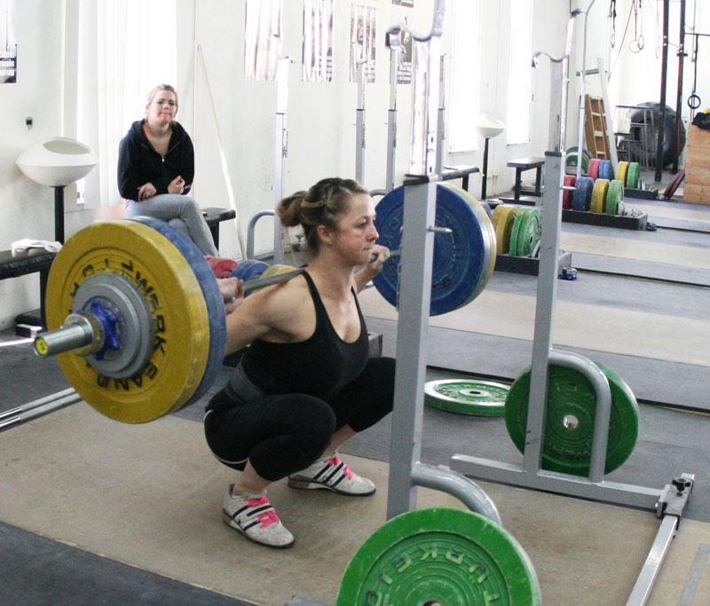 A la hora de cargar el peso, tenemos dos opciones: echarnos las barra a los hombros, como en las sentadillas convencionales, o utilizar una pesa o mancuerna. En este caso, las podemos tener delante del cuerpo.