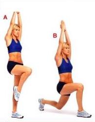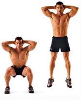 Ponte de pie de puntillas y con las manos entrelazadas sobre la nuca. Ahora, haz como si te fueses a agacha pero detente cuando tus piernas formen un ángulo de 90 grados y, entonces, vuelve a subir hasta alcanzar la posición inicial. Haz 2 series de 15 repeticiones cada una.