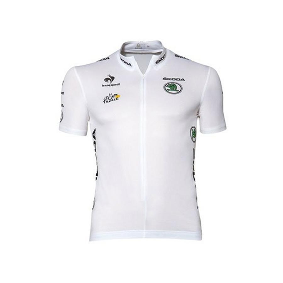 Maillot blancoEste maillot fue introducido por primera vez en 1968 y se entregaba a aquellos ciclistas que eran los primeros en la combinación de tiempo, puntos y montaña. Actualmente, ya no es así y el maillot blanco es para el ciclista más joven mejor clasificado. Se limita a los deportistas menores de 25 años.