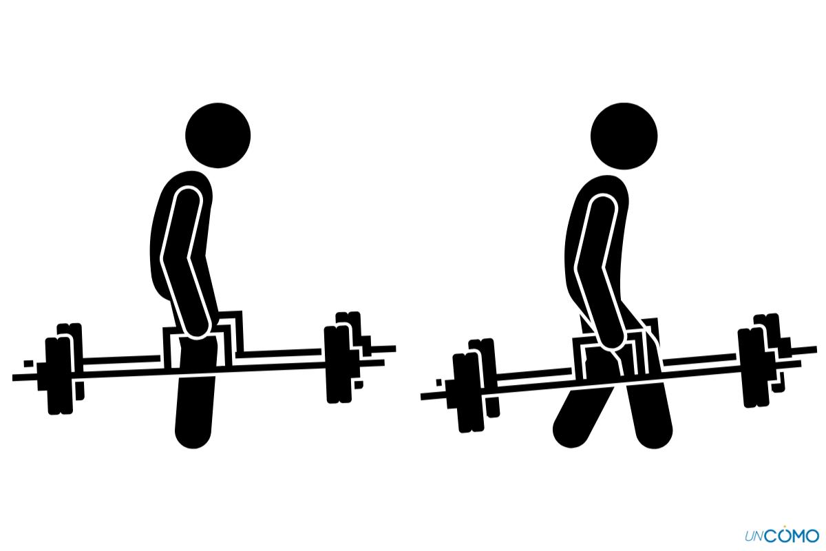 Este ejercicio para resistencia muscular es una variante del peso muerto, se caracteriza por enfocarse en tu agarre, la parte superior de la espalda y el core. El ejercicio se hace sin ejercer fuerza en la parte inferior de la espalda, pero se entrena prácticamente todo el cuerpo: los bíceps, los tríceps, la musculatura de la espalda superior, los músculos de las piernas, entre otros.