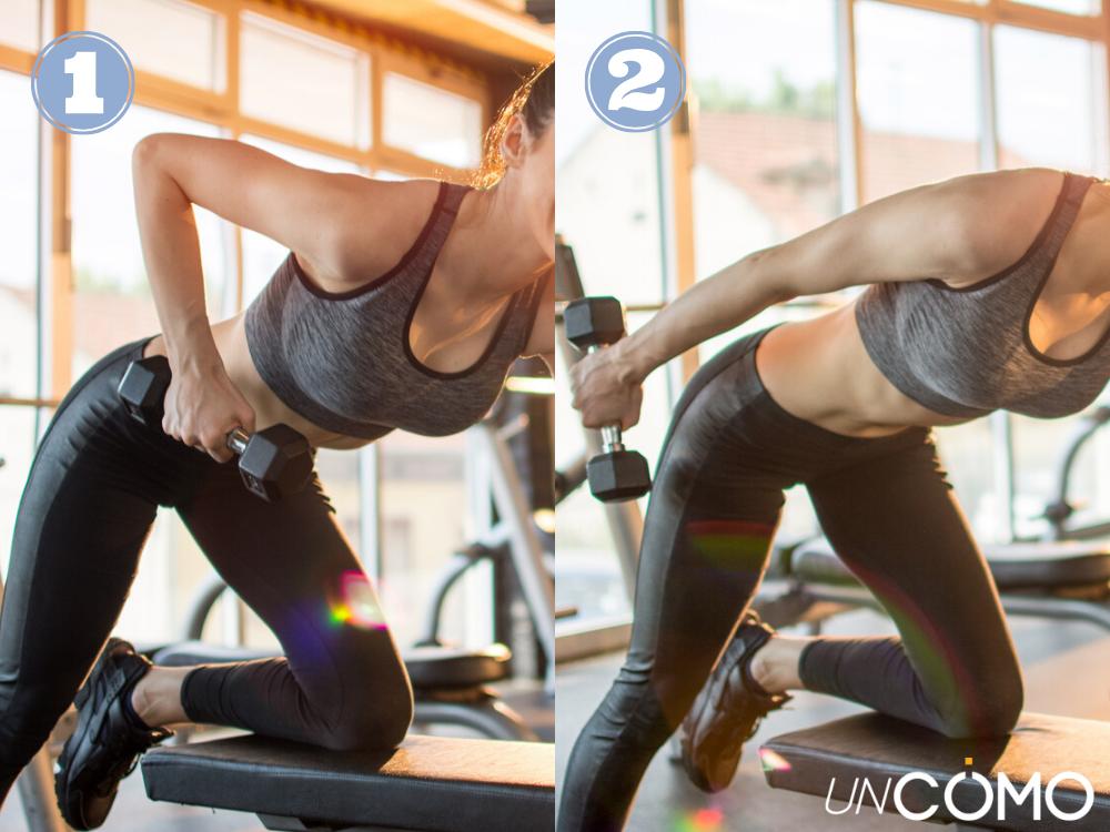 - Apoya la rodilla contraria del brazo que vayas a ejercitar primero.