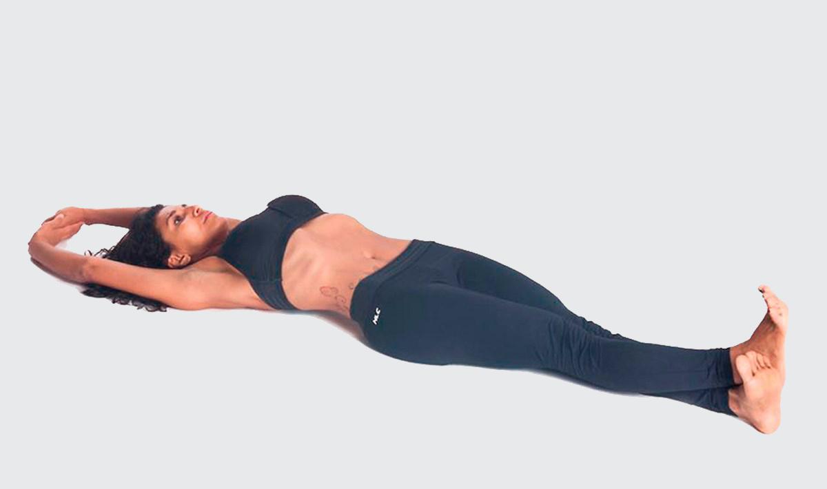 - Recuéstate sobre el suelo con la espalda recta y los brazos abiertos hacia los costados.