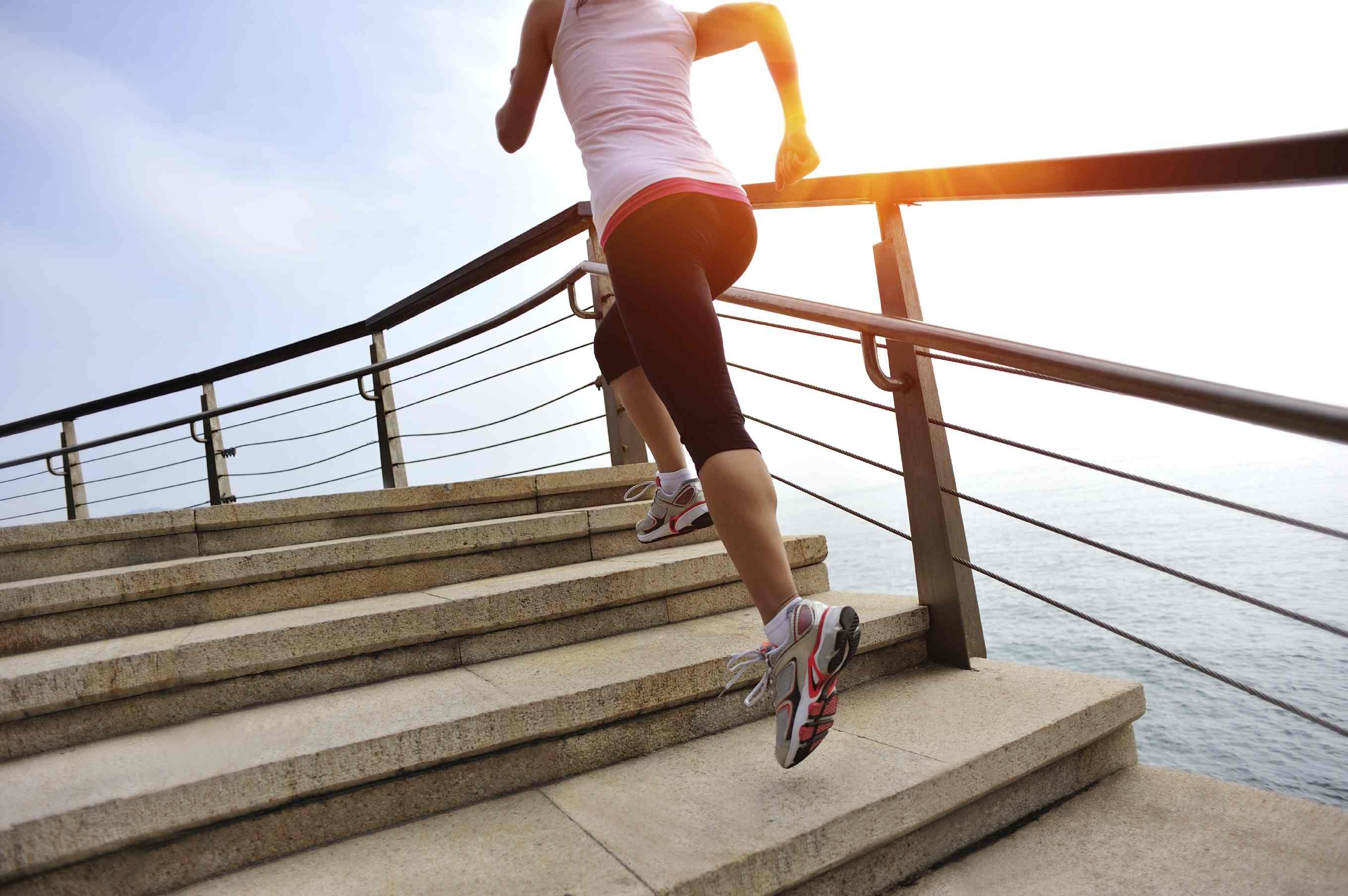 La idea es subir las escaleras corriendo a la velocidad que tu resistencia te permita, cronometrando el tiempo que te toma llegar hasta la cima. A medida que vayas practicando debes ser capaz de hacerlo más rápido y, una vez que perfecciones la técnica, incluso podrás usar pesas para incrementar el trabajo físico. Esta práctica solo es apta para personas con rodillas saludables y articulaciones que soporten el impacto.
