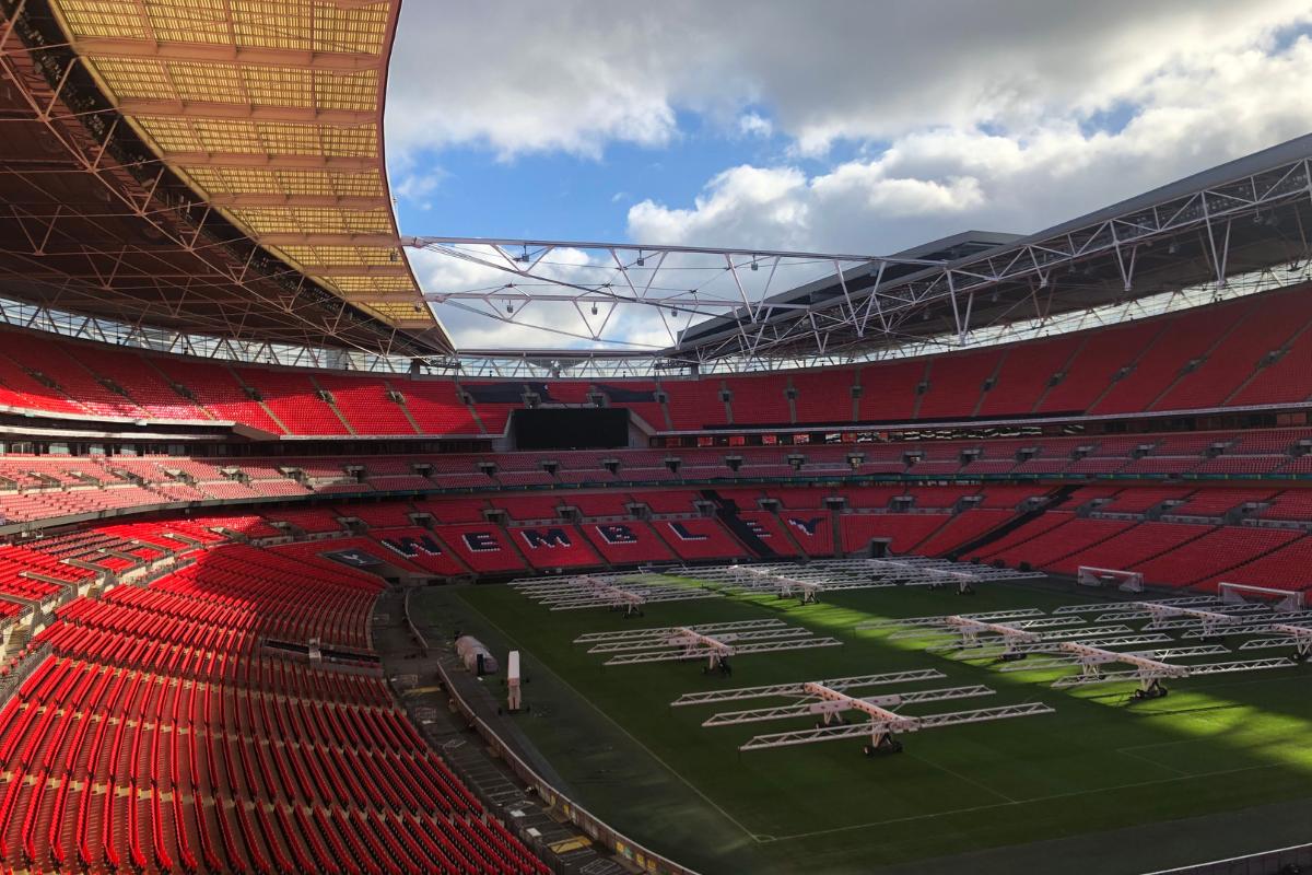 Situado en la ciudad de Londres, en Inglaterra, tiene una capacidad de 90.000 espectadores. En Wembley juega la selección inglesa de fútbol como local y cada año es la sede de las finales de la Community Shield, la FA Cup y la Copa de la Liga de Inglaterra. Este estadio también ha albergado varias finales de la Champions League.