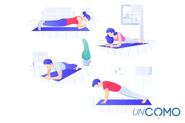 Una vez lo tengas, dispón tus manos sobre la superficie de la misma forma en que lo has hecho para el ejercicio anterior, pero debes tener en cuenta que cuanto más abiertas estén tus manos más trabajaras los pectorales en detrimento de brazos. Es importante no dejar caer la cadera, para ello mantén abdominales y glúteos en tensión, algo que además te ofrecerá más beneficios con un simple ejercicio hecho desde casa.