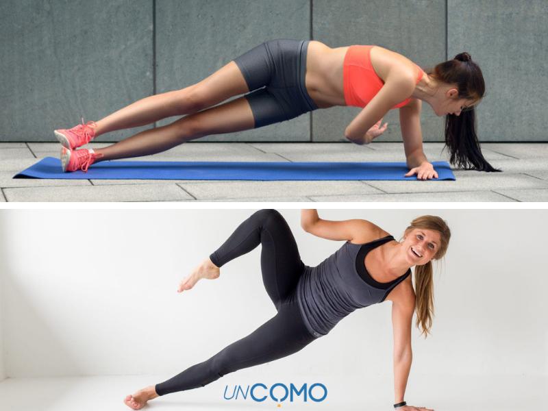 En el tercer día puedes implementar planchas dinámicas para aumentar la intensidad del entrenamiento. Desde unCOMO te ofrecemos varias opciones para que puedas obtener mejores resultados. Empecemos con una de las planchas más intensas, la plancha lateral con crunch oblicuo: