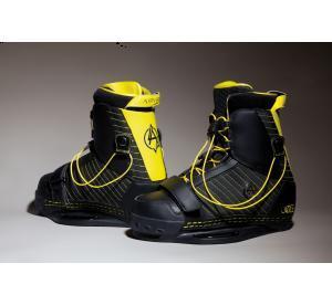 La utilización de distintos sistemas en fijación del pié es muy común en wakeboard. Algunas marcas utilizan las botas con fijación mediante velcro y otras mediante cordones delanteros o traseros. El sistema pierde importancia, por norma general será necesario que sintamos nuestro talón totalmente fijado. Si no es así, podemos sufrir lesiones con mayor facilidad.