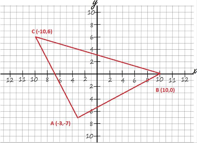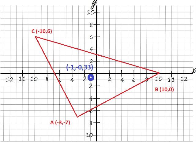 y = [(-7) + 0 + 6] / 3 = -1 / 3 = - 0,33