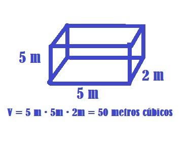 Volumen = 5 metros altura x 10 metros cuadrados = 50 metros cúbicos.