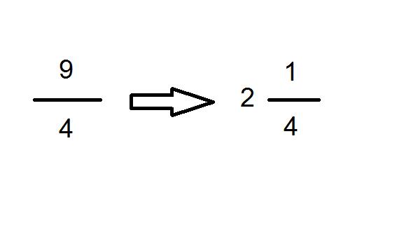 Por ello, vamos a valernos de un ejemplo para que resulte más sencillo aprender cómo convertir de fracciones impropias a mixtas: supongamos pues que queremos convertir la fracción impropia 9/4 en una fracción mixta.