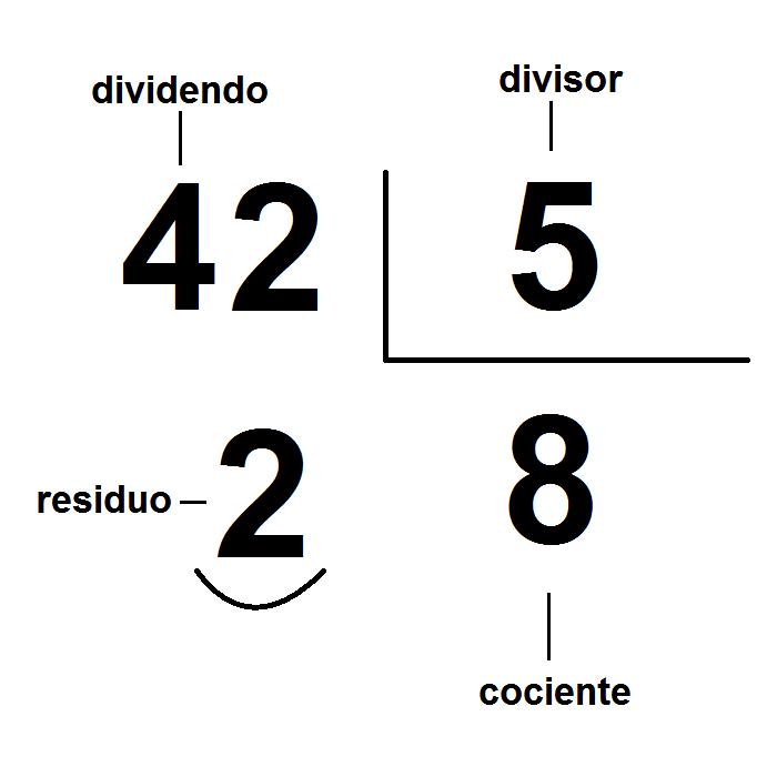 Como hemos visto en el ejemplo, hemos escogido 8 como cociente ya que al multiplicarlo por 5 obtenemos un resultado cercano a 42, pero no superior (como ocurriría en el caso de poner 9 como cociente).