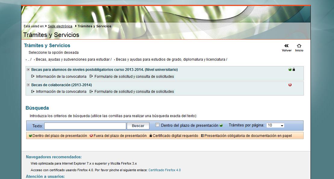 Haz clic en Trámites y servicios->Becas, ayudas, subvenciones y premios->Becas, ayudas y subvenciones para estudiar->Becas y ayudas para alumnos de grado,diplomatura o licenciatura->Becas para alumnos de niveles postobligatorios curso 2013-2014. (Nivel universitario).