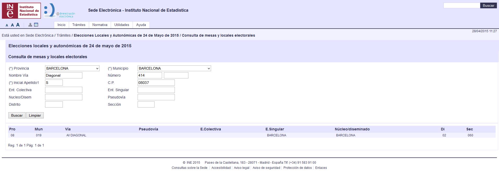 Así pues, deberás acceder a la web del buscador del INE y tendrás que introducir una serie de datos: dirección y código postal de tu domicilio, primera letra de tu apellido, etc. También puedes consultar un documento que publica el INE cada vez que hay elecciones; encontrarás una relación de todas las mesas, secciones y colegios electorales que confluyen en las elecciones.