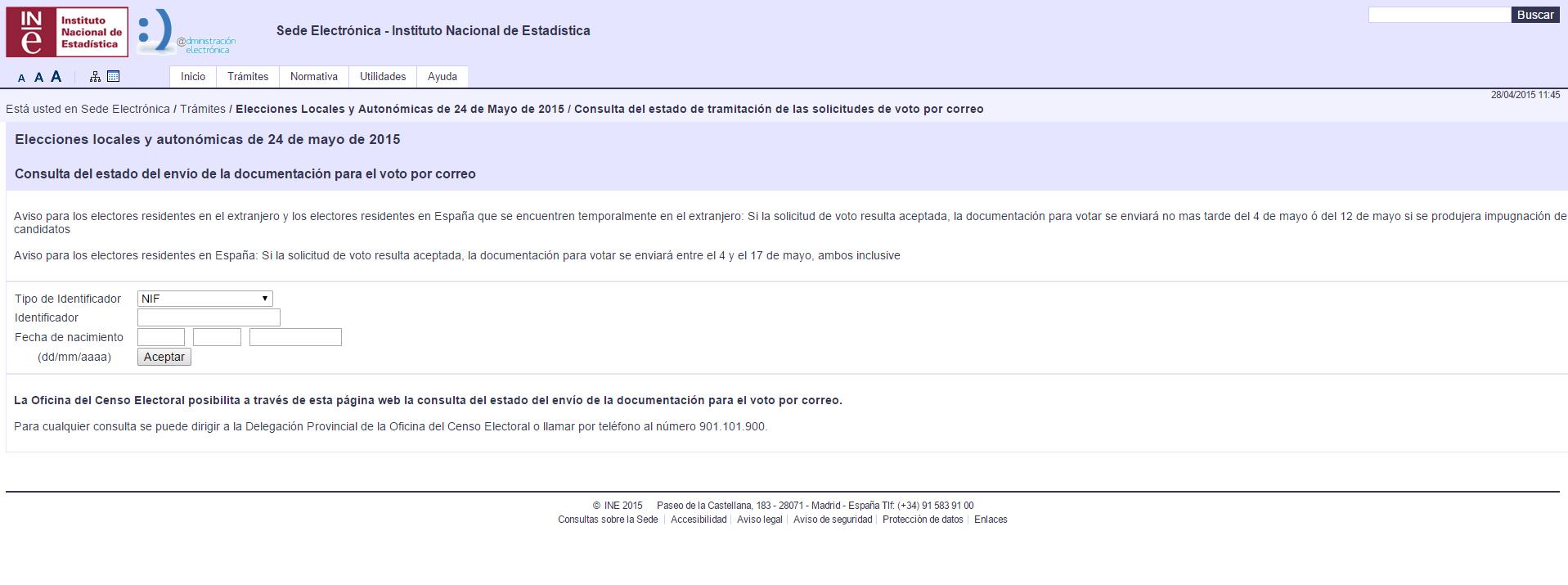 Si has solicitado el voto por correo y aún no has recibido la documentación en casa puedes rastrear el estado del envío por Internet. Tendrás que acceder al formulario de consulta e introducir tu DNI, el identificador de tu voto por correo (el número del código de barras que te dieron en la oficina postal) y tu fecha de nacimiento.