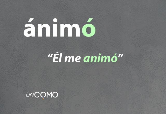 Por su parte, "animó", con acento en la "o", viene también del verbo animar. Su conjugación, no obstante, es esta vez en pasado, concretamente en tercera persona del singular del pretérito perfecto simple del verbo animar.
